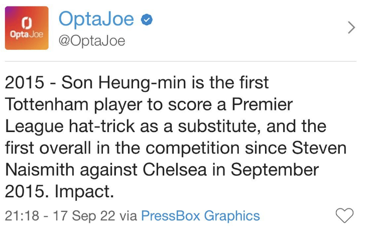 손흥민 선수가 세 번째 골을 넣은 뒤 부심의 오프사이트 깃발이 올라갔지만 VAR 확인 결과 골로 인정되었습니다. 이로써 5개월 만의 첫 득점을 해트트릭으로 완성 지었습니다. 손흥민은 EPL 역사상 교체 투입되어 해트트릭을 완성한 첫 토트넘 선수로 기록되었습니다.