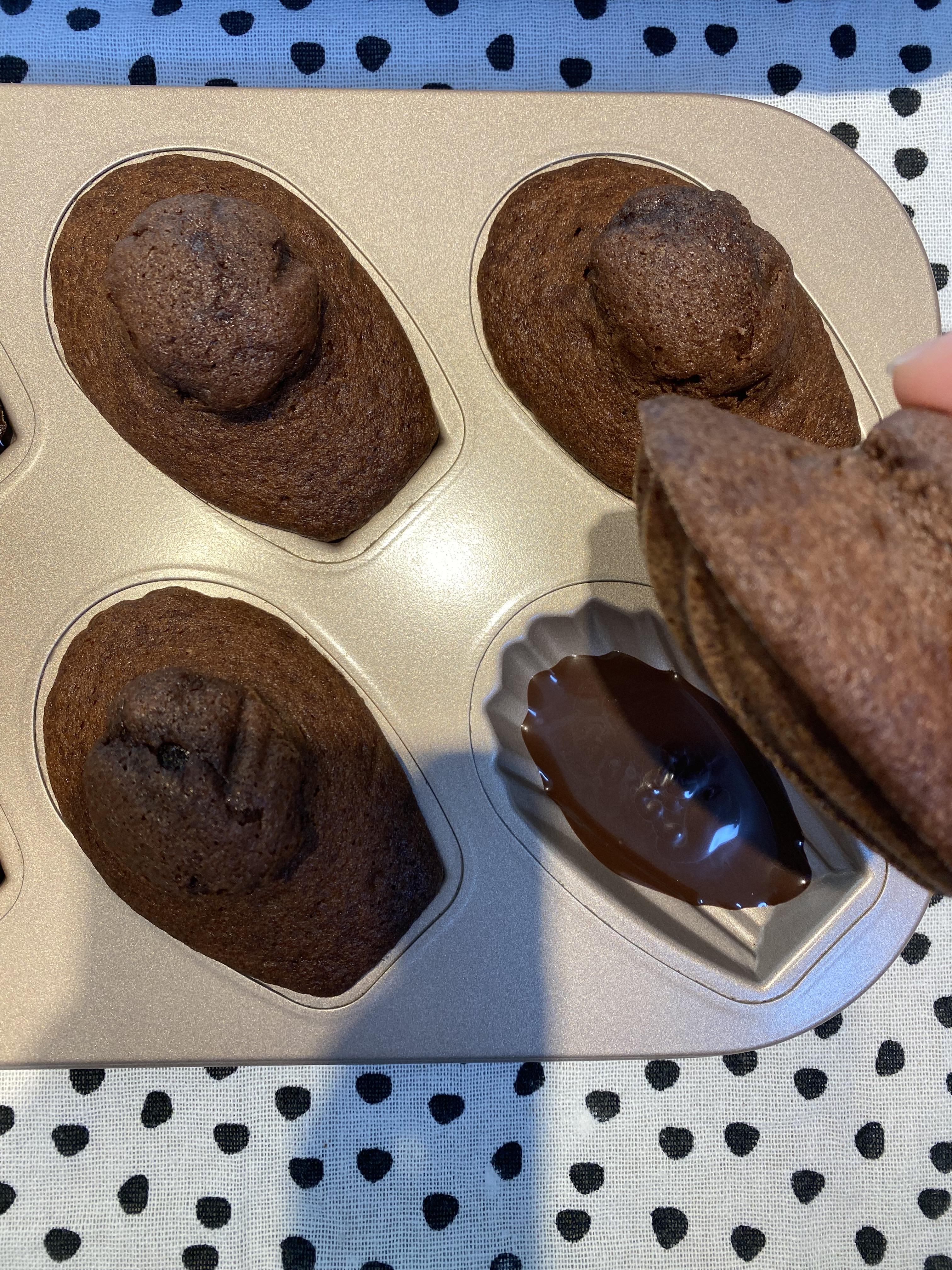 배꼽도 빵빵하고 초콜릿도 반짝 반짝한 초코 코팅 마들렌 완성!