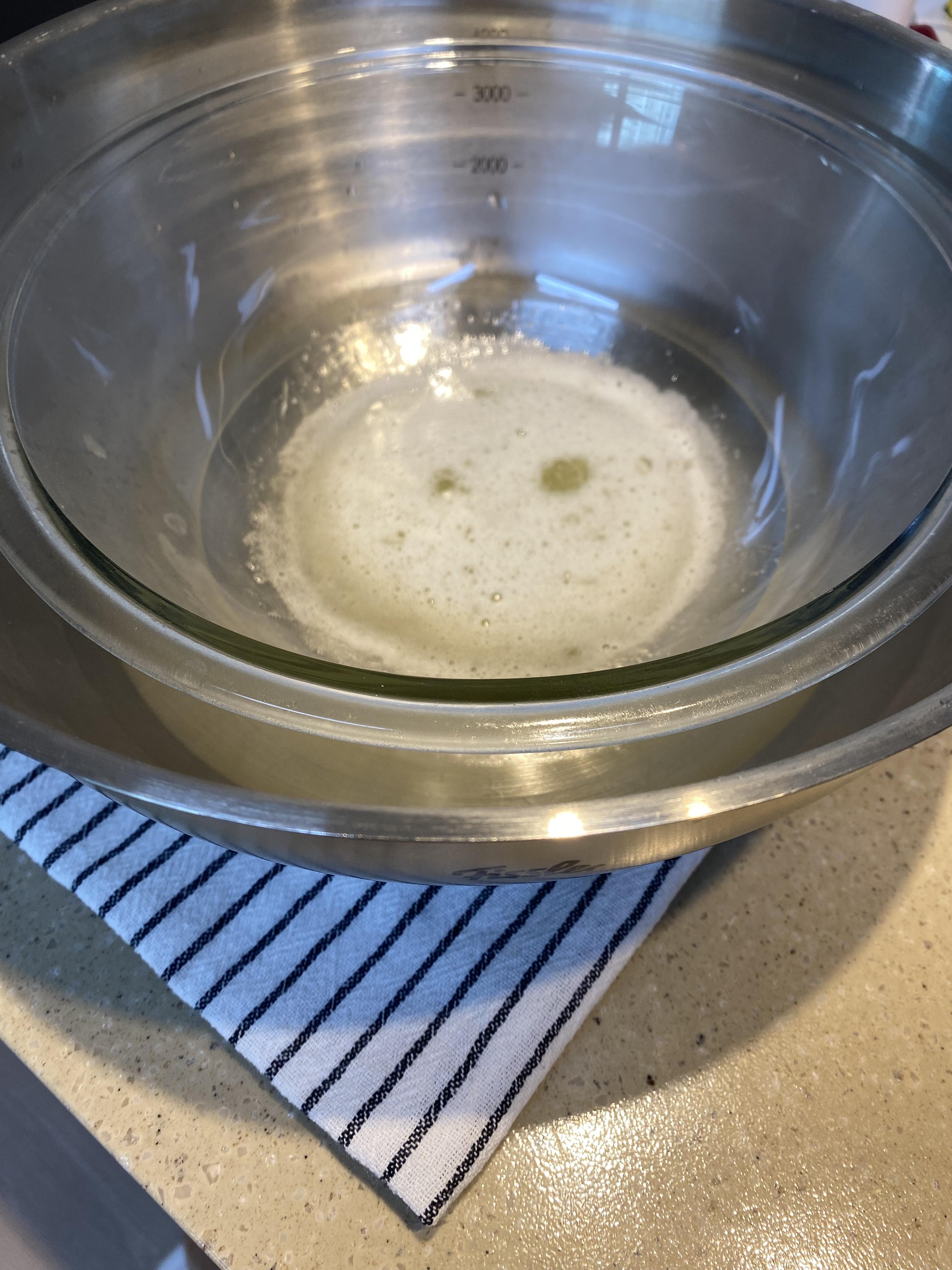 온도를 확인하고 설탕이 다 녹았다면 중탕을 빼 줍니다.