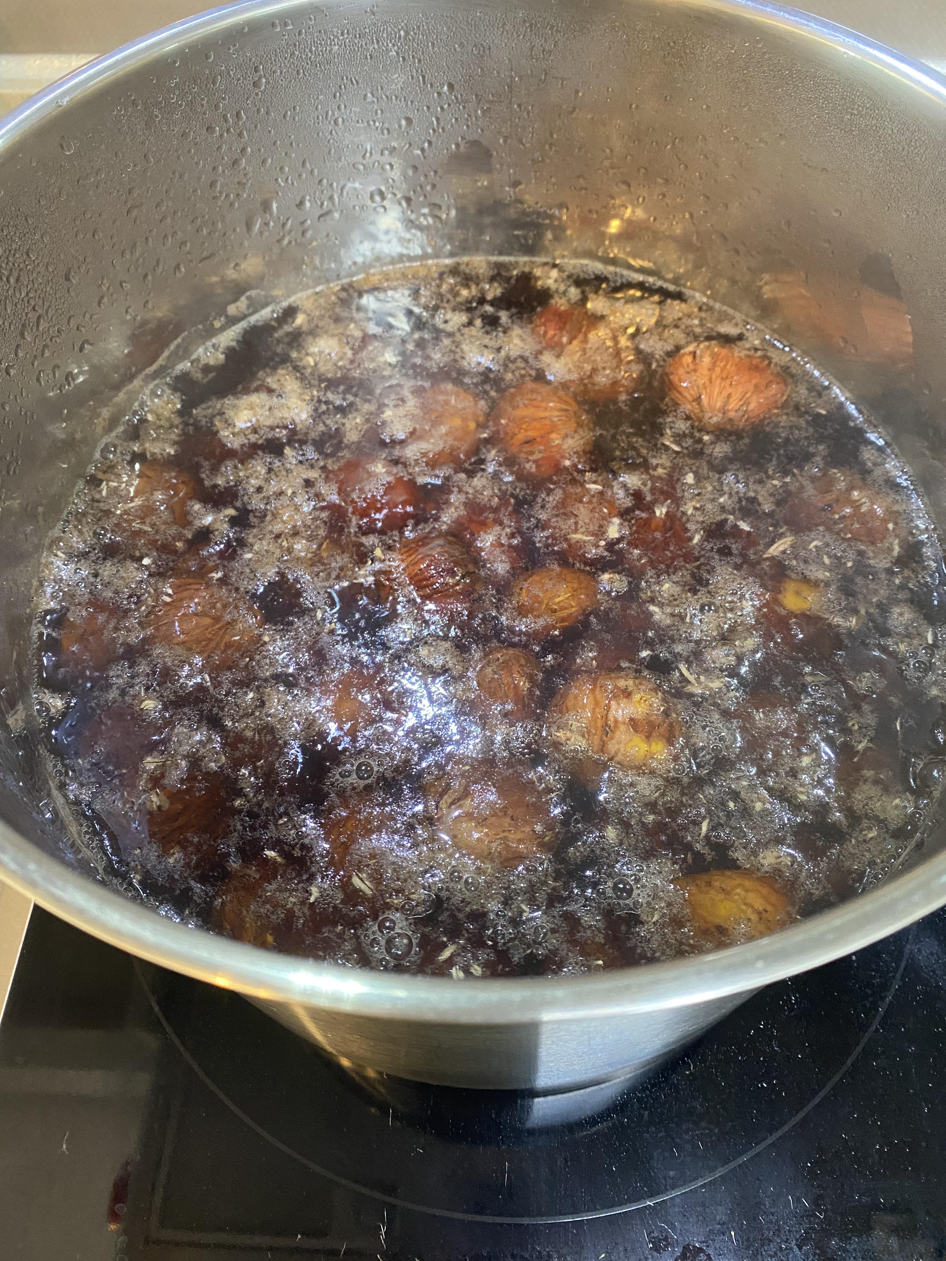 밤이 잠길만큼 물을 붓고 약불로 끓여주세요.