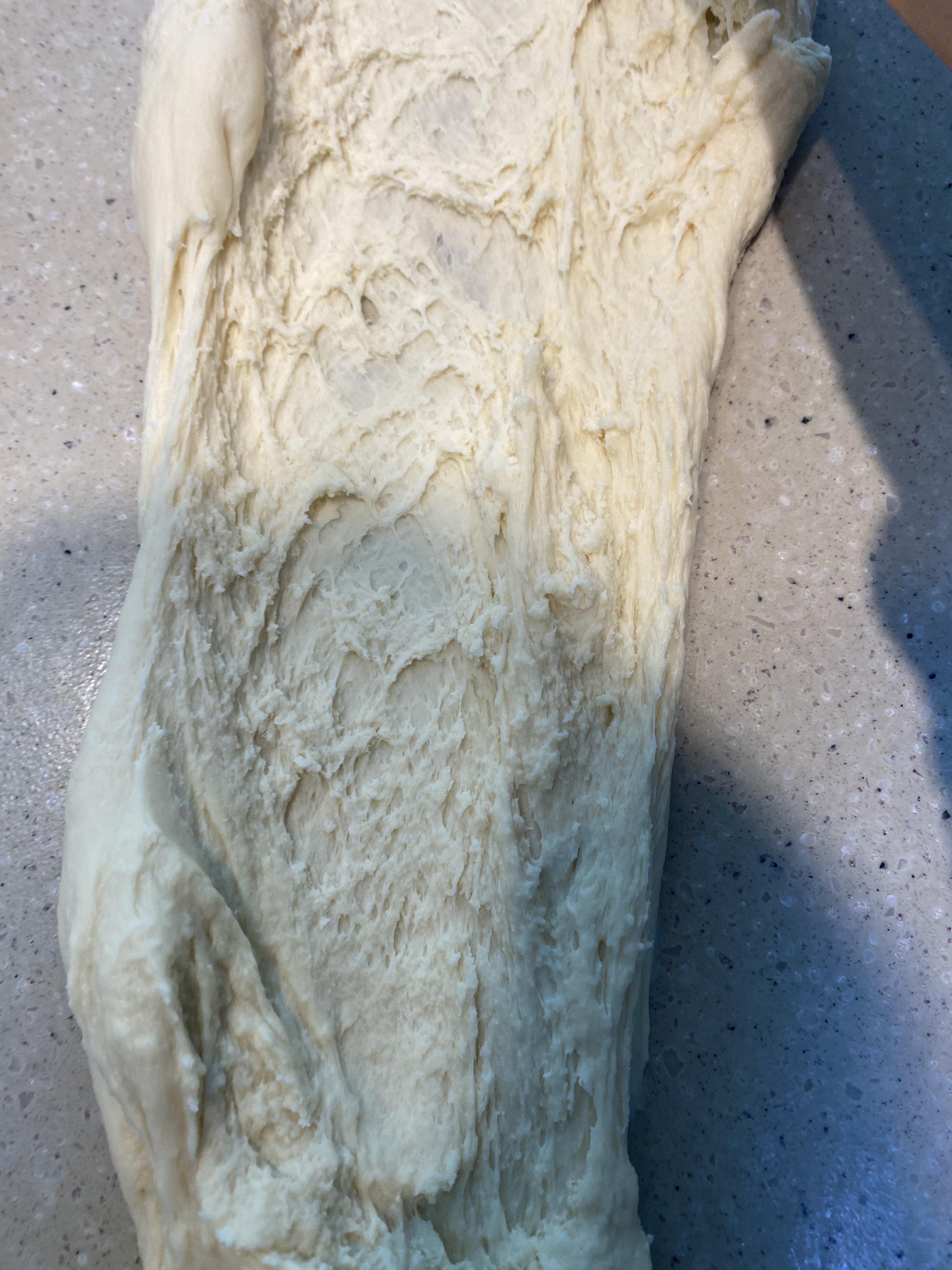 발효 후 2배 커진 반죽 모습이에요.