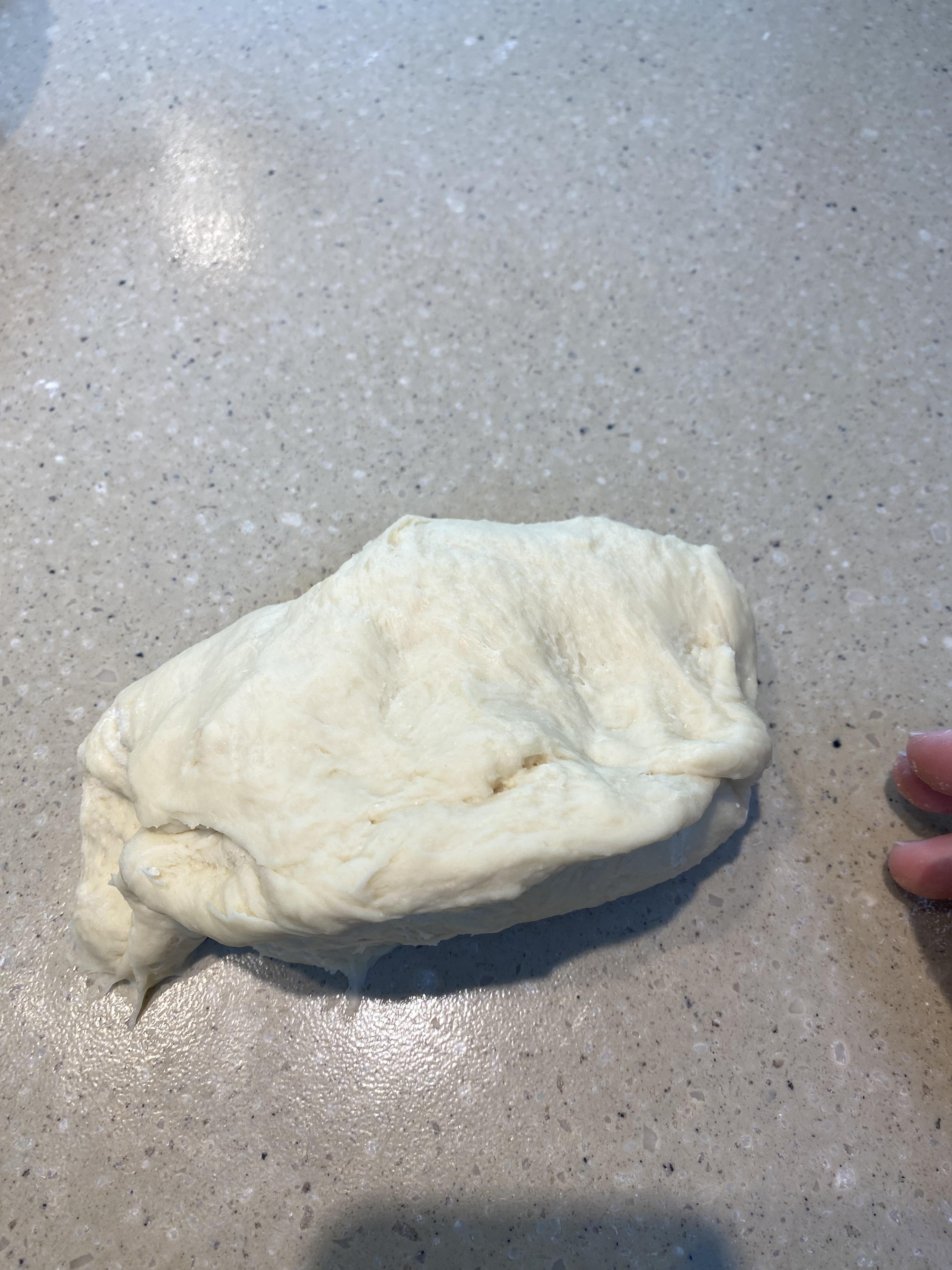 이 때 반죽대 위에 강력분을 흩뿌리면 작업하기 수월해요. 반죽이 매끈해 질때까지 반죽합니다.